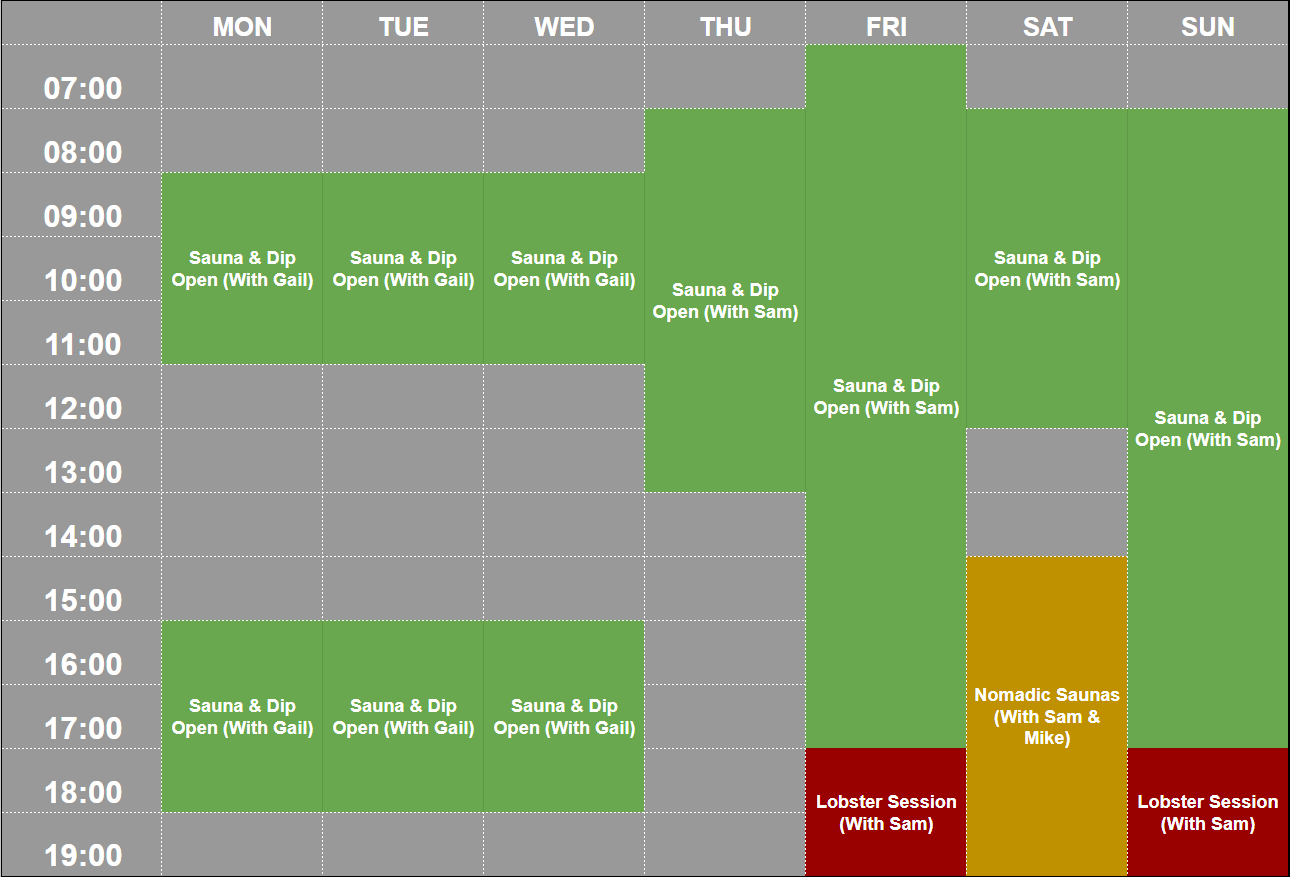 Nomadic saunas is a once a week wild sauna gathering: 90 minutes of wood fired heat and cold immersion, held within nature.